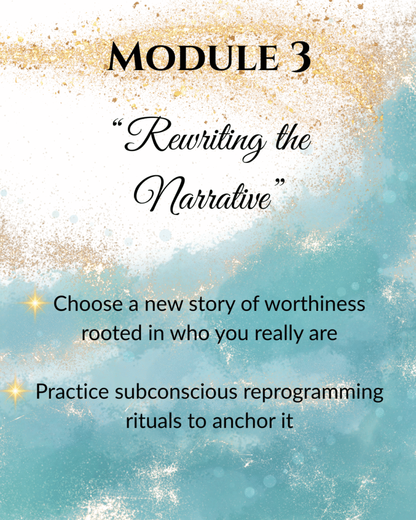 A healing journey to reclaim your worth, rewrite your story, and embody your truth, from the inside out.